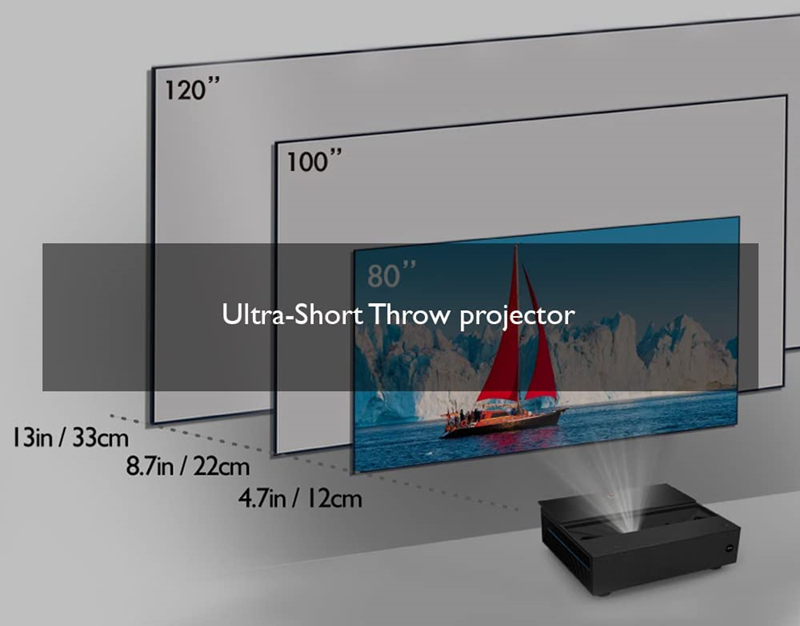 BenQ V7050i and XGIMI Aura are both ultra-short-throw projectors, which can project a bigger screen within the same throw distance compared with Dangbei mars Pro.