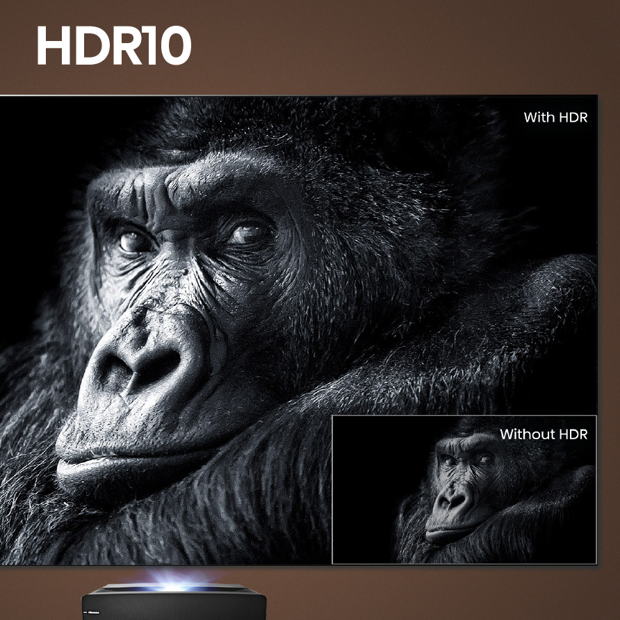 Hisense L5G 4K Projector supports Filmmaker Mode, helping you experience your favorites the way their creators intended. Gamers are supported, too. Game Mode keeps input lag down to a minimum to ensure your controls feel smooth and responsive. The projector will even recognize gaming consoles and adjust accordingly with Auto Low Latency Mode.