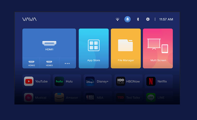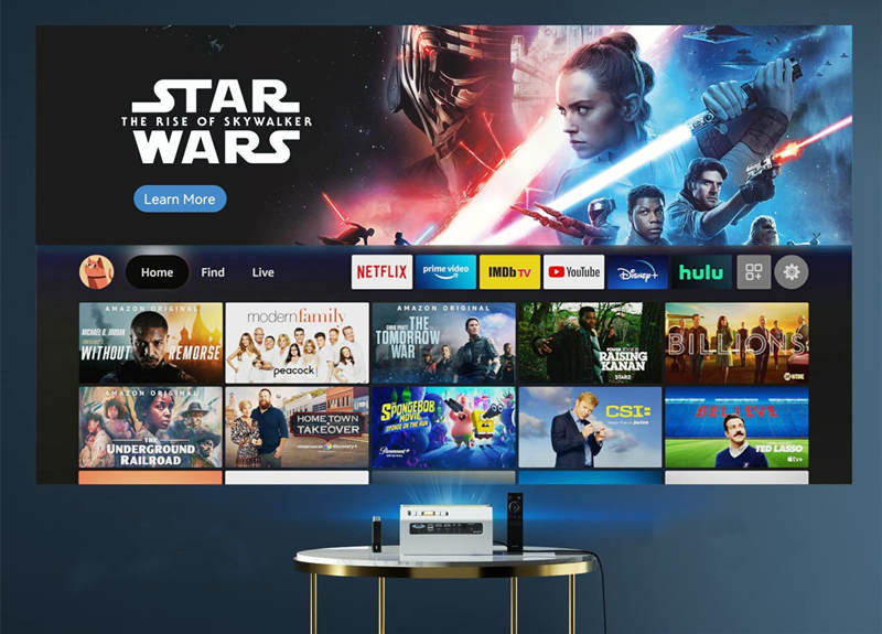 If the projector has an Android system or Tizen system, you can access streaming videos conveniently. For example, you can download YouTube in the App store of the projector to access some free movies and shows. If the projector is powered by Android TV, you can get hundreds of streaming Apps in Play Store. Some smart projectors have built-in Apps, such as Netflix, Disney+, and more.