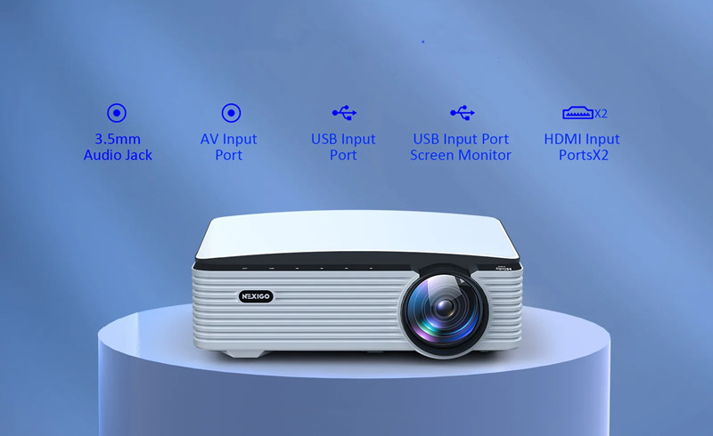 For wired connection, the two projectors are equipped with HDMI, USB, and AV, but NexiGo PJ40 has one more RJ45 LAN port.