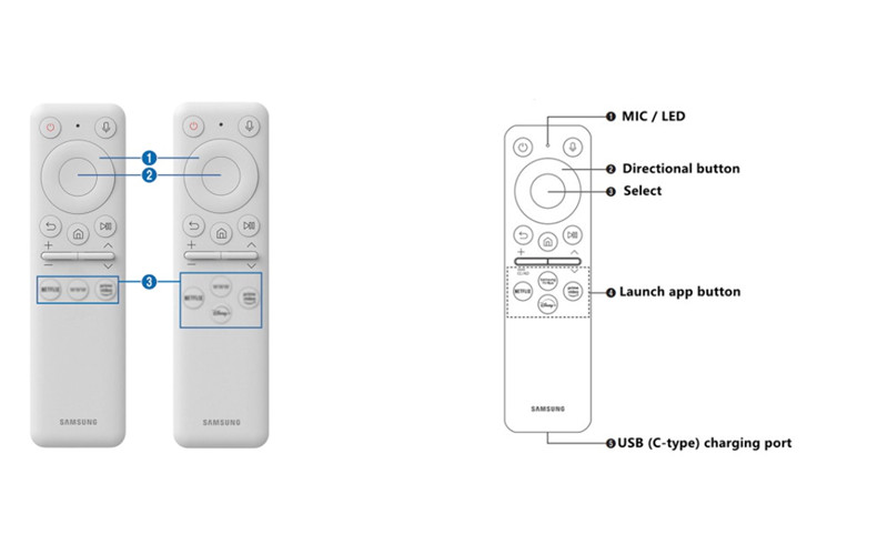 The remote control is equipped with a USB-C charger charging port, enabling users to charge it directly with a USB cable.