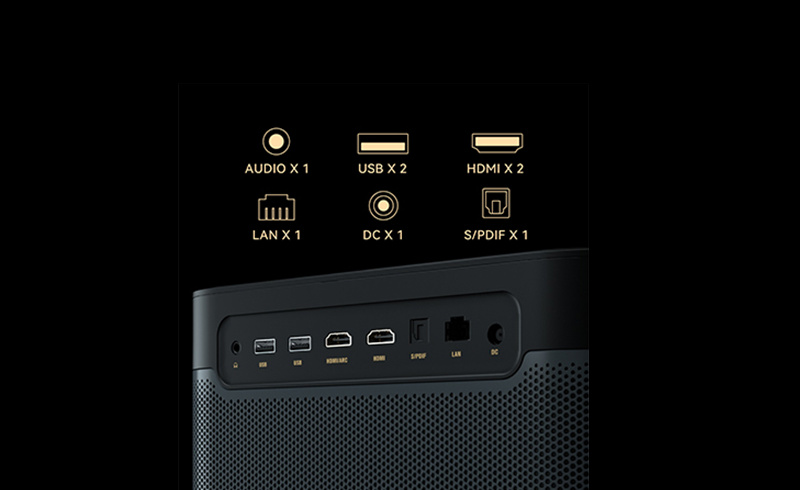 The two 4k laser projectors are equipped with versatile interfaces, including HDMI ports, USN ports, LAN ports, audio output interfaces, compatible with different mobile devices, such as computers, phones, game players, etc.