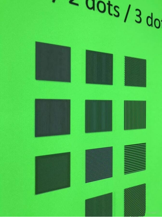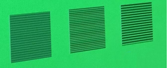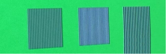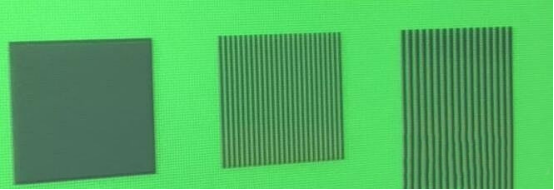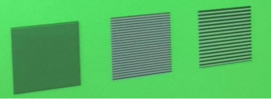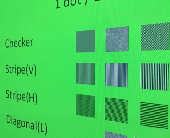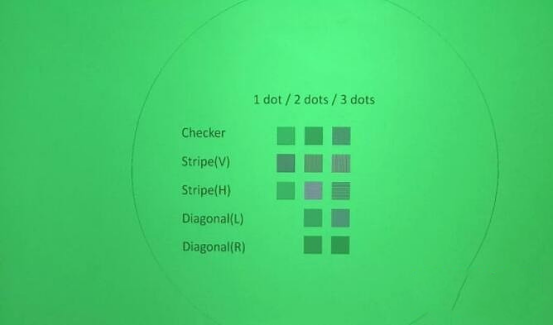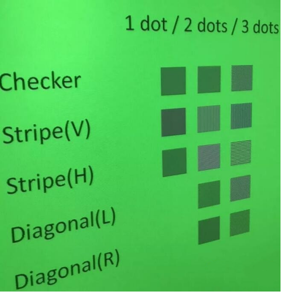 The test pattern is like this. It’s basically a box with several horizontal bars, vertical bars and diagonal bars, plus a big circle. The most elaborate test pattern is composed of 1 dot. We mainly look at the first line of checker, the second line of stripe vertical bar and the third line of horizontal bar.