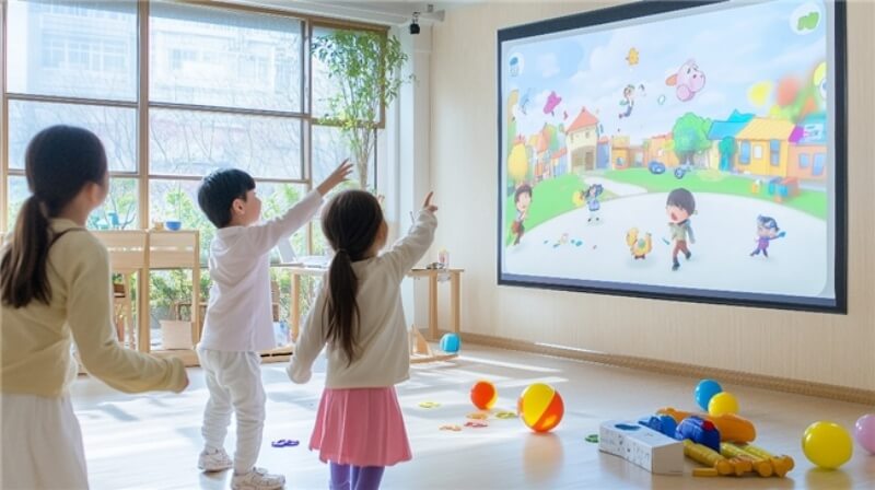 In clothing stores, waiting areas outside fitting rooms often fall short of expectations—especially for families with children. Kids quickly grow impatient, which disrupts the shopping experience for parents. While some retailers provide traditional toys like block tables or ball pits, these setups are usually bulky, hard to clean, and costly to maintain. Moreover, most standard projectors perform poorly in brightly lit commercial spaces, leading to blurry visuals and sluggish responsiveness that ruin the experience.