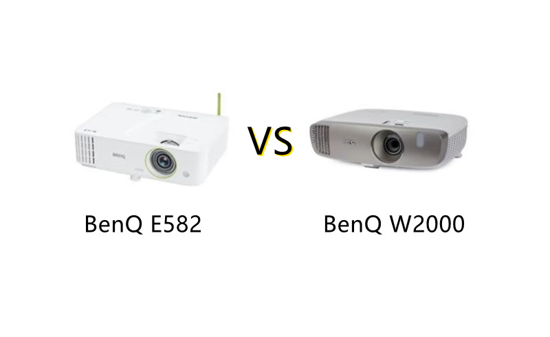 BenQ E582 and BenQ W2000 are both DLP projectors. They have the same 1080P resolution. What are the differences between them?