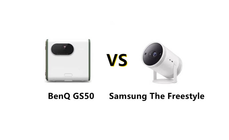 Compared with BenQ GS50, Samsung The Freestyle is much more expensive. BenQ GS50 costs $799 while Samsung The Freestyle costs $899.99. BenQ GS50 has 500 ANSI lumens while Samsung The Freestyle is rated at 250 ANSI lumens. BenQ GS50 has a built-in battery while Samsung The Freestyle has no built-in battery.