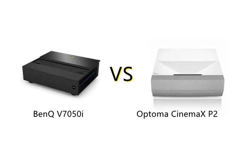 BenQ V7050i and Optoma P2 are both ultra-short throw projectors. They have the same 4K resolution and throw ratio of 0.252:1 but different brightness and interfaces.