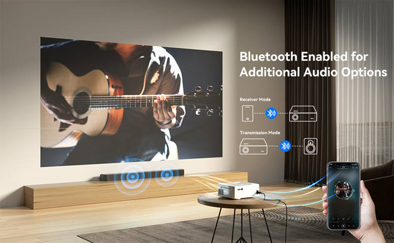 As the projector supports Bluetooth, it can work as a Bluetooth soundbar to build a relaxing environment.