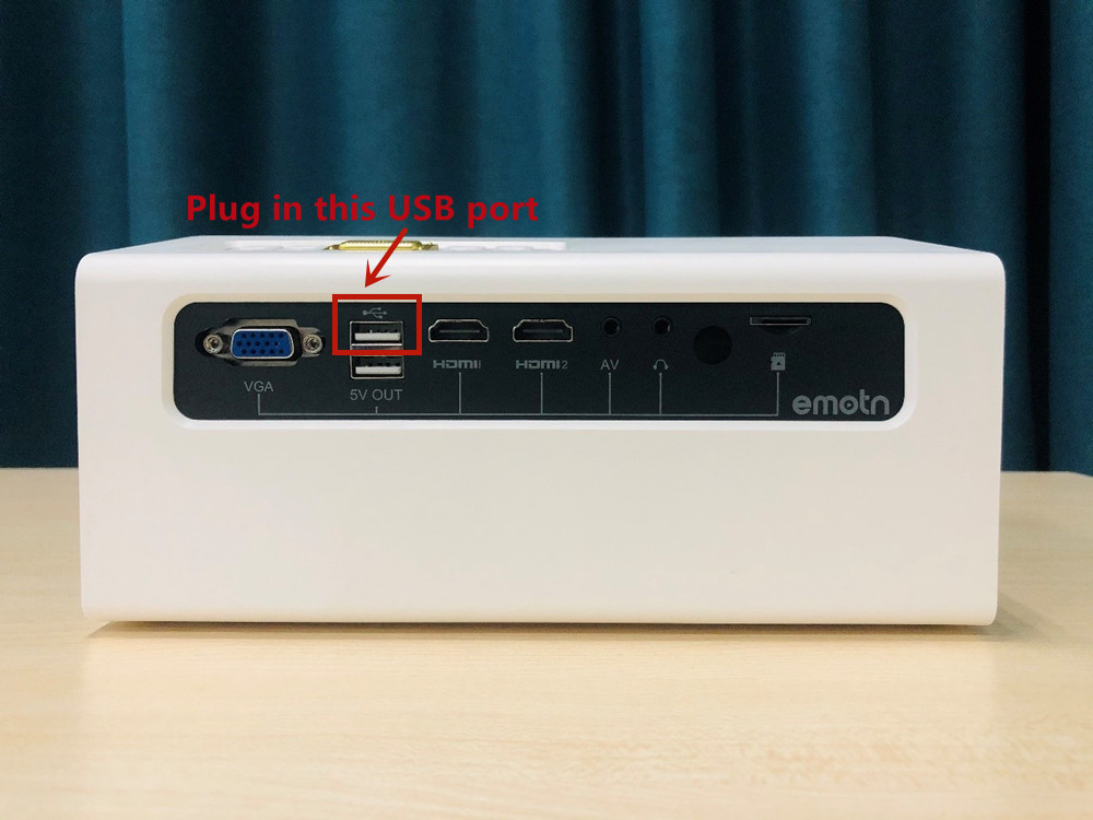 - Connect your iPhone to the projector using your USB cable; please plug in the upper USB interface.