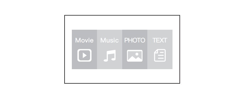 When projector is turned on, the home screen will appear as the picture below. You can see file types such as Video, Music, Picture, and Text files are available.