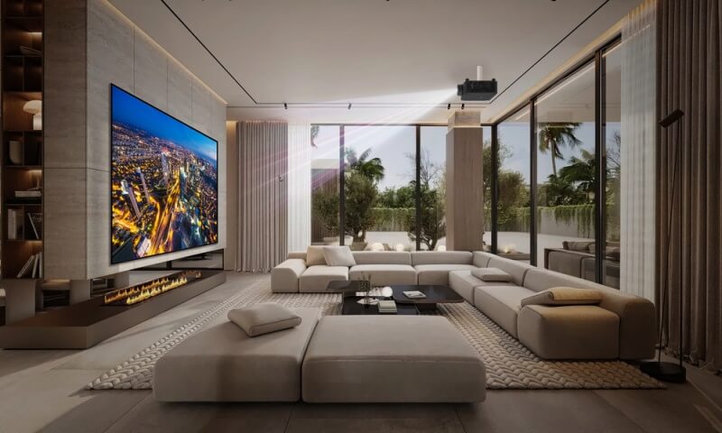 The projector supports Dolby Digital & Dolby ATMOS pass-through via eArc/Arc. Optional smart control systems (such as Crestron and AMX) can be integrated for multi-device, enhancing overall home intelligence.