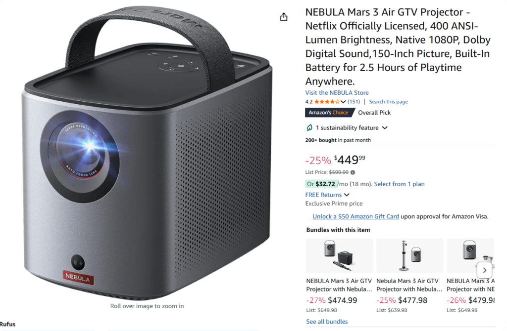 Anker Nebula Mars 3 Air – $449 on Amazon