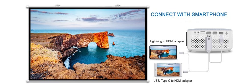 FANGOR F-206A projector comes with multiple connection including USB, TF card, HDMI, VGA, and AV port. The Bluetooth feature allows you to connect Bluetooth speakers and Bluetooth headphone. However, if some of you try to connect your smartphone to FANGOR F-206A projector, you would fail to do it undoubtedly.