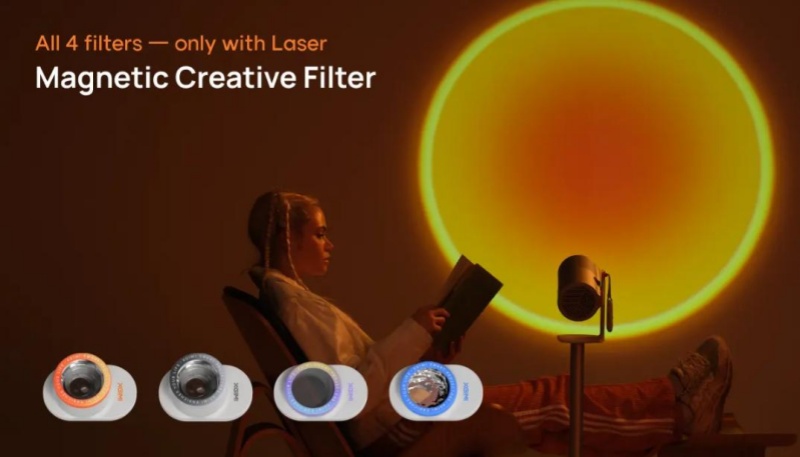 Another new addition is support for magnetic snap-on lens filters, designed to create special visual effects. The standard MoGo 4 comes with one filter, while the MoGo 4 Laser includes four filters in the box. Audio also gets an upgrade: the MoGo 4 series is equipped with dual 6W Harman Kardon speakers, promising improved sound quality compared to the MoGo 3 Pro’s underwhelming 5W setup. That said, depending on your space or whether you’re outdoors, you may still want to pair the projector with a Bluetooth speaker or soundbar for optimal audio.